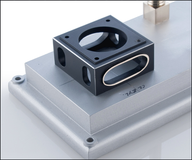 Zylindersockel Ein Alu-Block wurde zuerst genau auf die Außenmaße gebracht. Dann mit einem Alu-Fräser per Koordinaten der Innenraum in Stufen mit Zustellung Z auf Tiefe gefräst, immer gegen den Uhrzeiger, damit die Innenkanten (Gleichlauf) sauber wurden. Anschließend mit gleicher Tiefeneinstellung und vorsichtiger Y-Zustellung das stehend gebliebene Mittelstück entfernt.